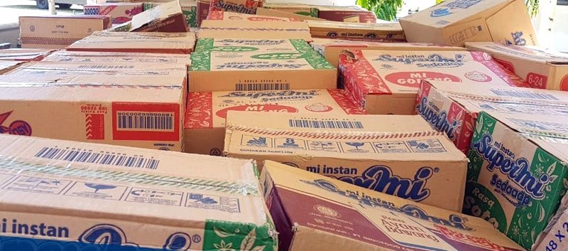 Kardus sepatu/kardus barang elektronik (umumnya berwarna-warni)